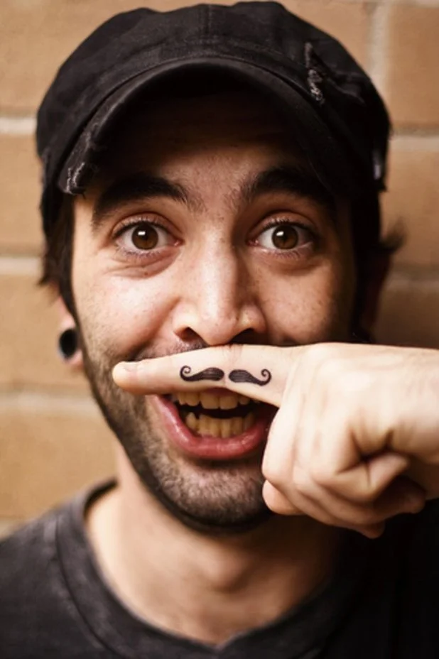 รอยสักสุดคลาสสิคของชาวฮิปสเตอร์โดยแท้จริง ลองนึกว่าทุกครั้ง ที่คุณถ่ายเซลฟี่กับเพื่อน คุณยกนิ้วขึ้นมาใส่หนวดได้ทันที ..น่าสนุกดีออก